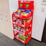 当オフィス徒歩2分ほどの距離にコンビニはあり便利ですが、オフィス内で購入できてとても便利。品揃えも豊富でオレオ、M&M、カロリーメイト、など100円から200円まで数多く取り揃えております。