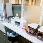 当オフィスのバーチャルオフィスご契約のお客様なら平日・24時間ご利用いただける電源・無線LAN付きオープンオフィス(共有スペース)には、ドリンクサーバー以外にも、湯沸しポット、電子レンジ、ウェットティッシュ、など各種生活用品取り揃えております。湯沸しポッドでインスタントスープやコーヒーをいれたり、電子レンジでハンバーガーを温めたり、ランチや残業に是非どうぞ。お湯や備品が足らなくなりましたら、受付に声をかけてくださればすぐに補充いたします。
