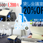 バーチャルオフィスAプラン・Bプラン共に、バーチャルオフィスご契約利用者様は、貸し会議室料金20%OFFでご利用できます!