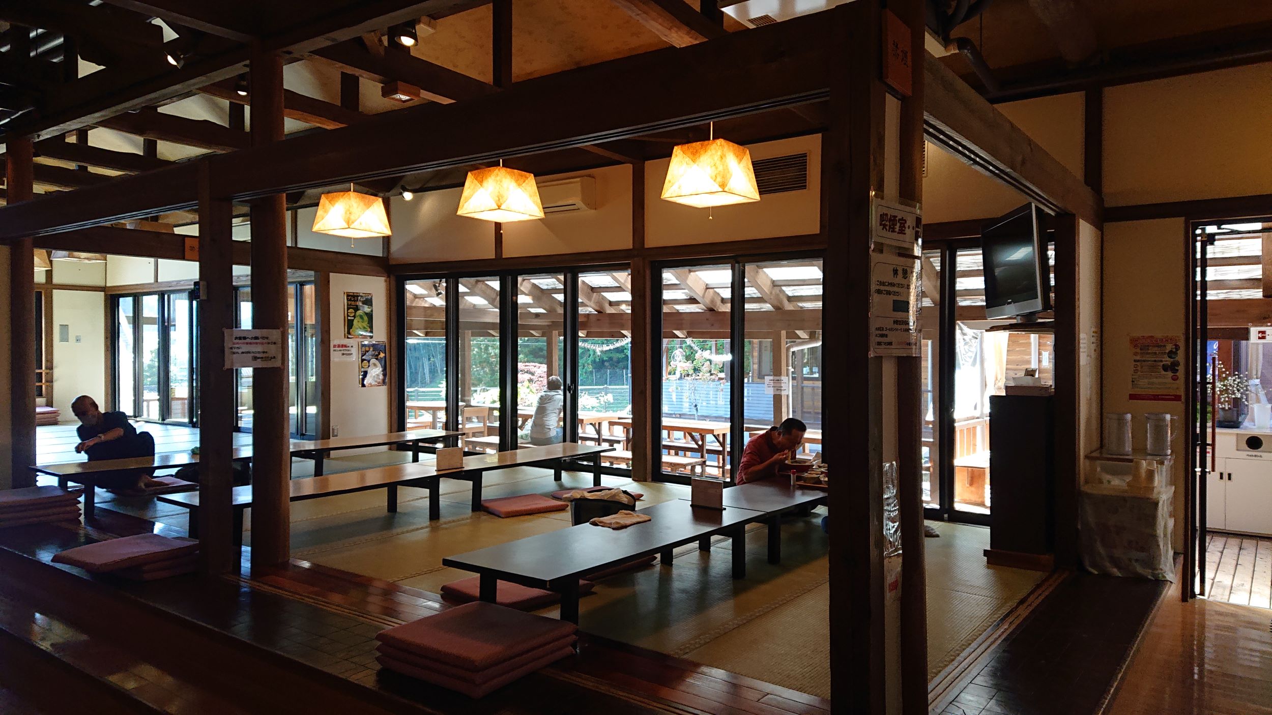 食堂もあります。野外カンターもあり外でも食事ができます!冬は寒そう~