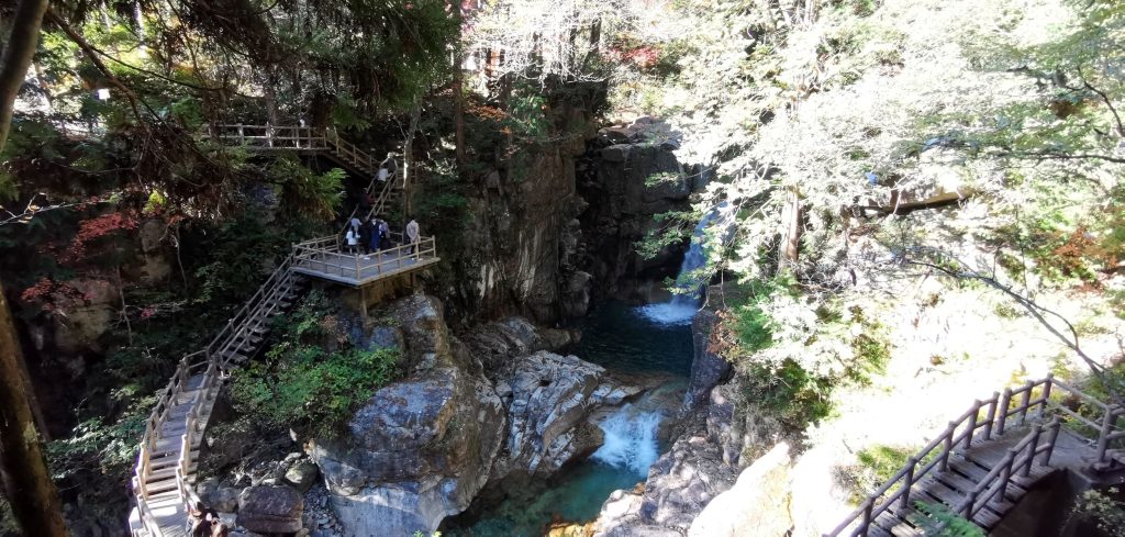 奥はには、意外と迫力のある「龍神の滝」があります。