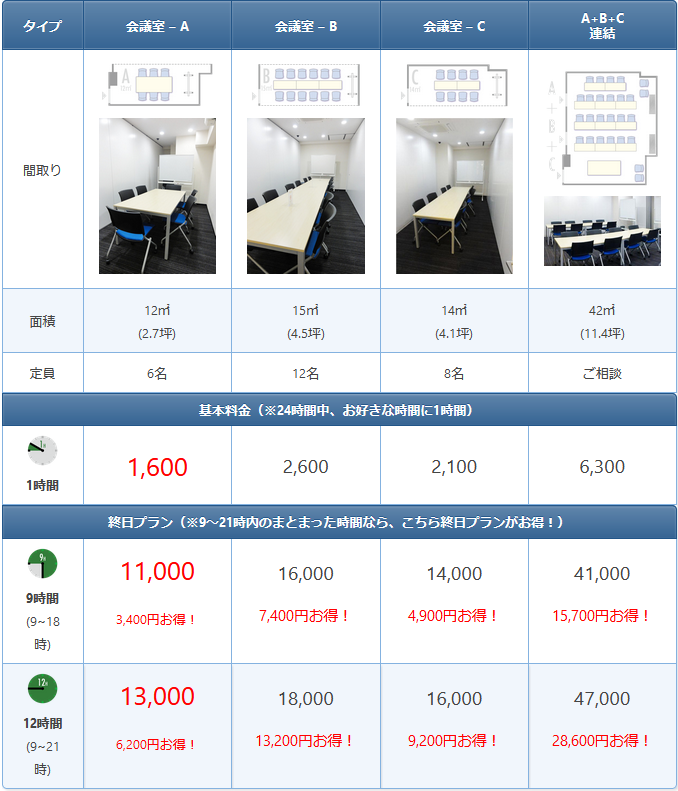 サークルの集会場に、面接会、会社説明会などミーティングルーム、シンプルでおしゃれなイベントスペースに、久屋公園イベントの控え室に、便利で格安の貸し会議室を是非ご利用ください。会議室の連結に関しては会議室ABC連結動画をご覧ください。