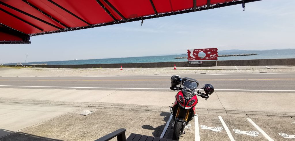 お店の目の前は、海が広がっています。大晦日の夜はここで初日の出を見に来るバイカーで埋め尽くされるそうです。僕も参加したいのですが寒すぎて参加する勇気が出てこないです(T^T)