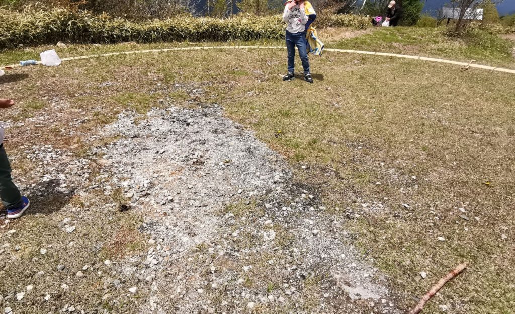 ん?ここが狼煙を炊いた跡かな~?この黒いところが燃やした跡か?今でも残ってる?よくわかりませんがこんな場所でした。道が険しかっただけに少し拍子抜けしました↷