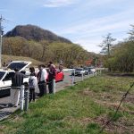 ビジネスリンクスナゴヤ室長新井です。イニシャルDの榛名山バトルスタート地点に到着しました!やはり、たくさんの86が駐まっています。マンガやアニメで有名な場所なので、とても賑やかです。駐車場のマンホールの蓋もイニシャルDの絵柄が描かれていて、とても面白いですね。看板にも表示されていますが、イニシャルDのマンホールがいろんな場所にあるんですね。全てのマンホールを見て回りたいですが、時間が足りないので、ここで我慢することにします。