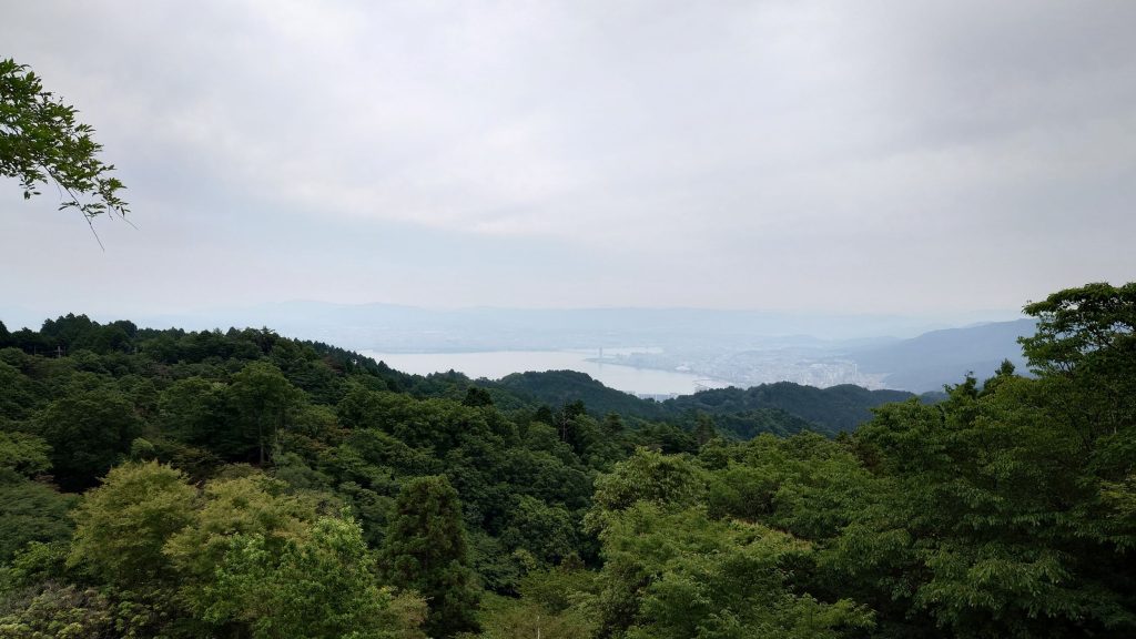 滋賀県大津市に位置する比叡山ドライブウェイ内にあります。比叡山観光自動車道路開通記念碑駐車場エリアに立ち寄り、まれにしか見ることのできない景色を楽しんできました(^_^)正面には京都の街を一望でき、左側を見ると滋賀県の琵琶湖が広がっています。同時にこれらの景色を楽しめる場所は、あまり多くはないと思います。朝一番で天候も良く、人も少なかったので、この景色を独り占めしてきました(^▽^)さて、これから延暦寺に向かいます。
