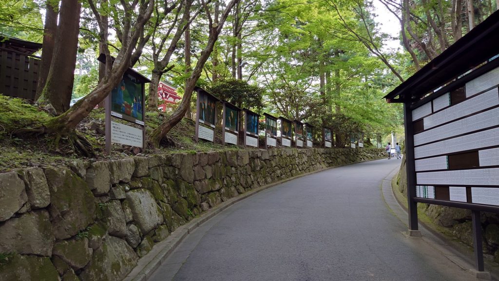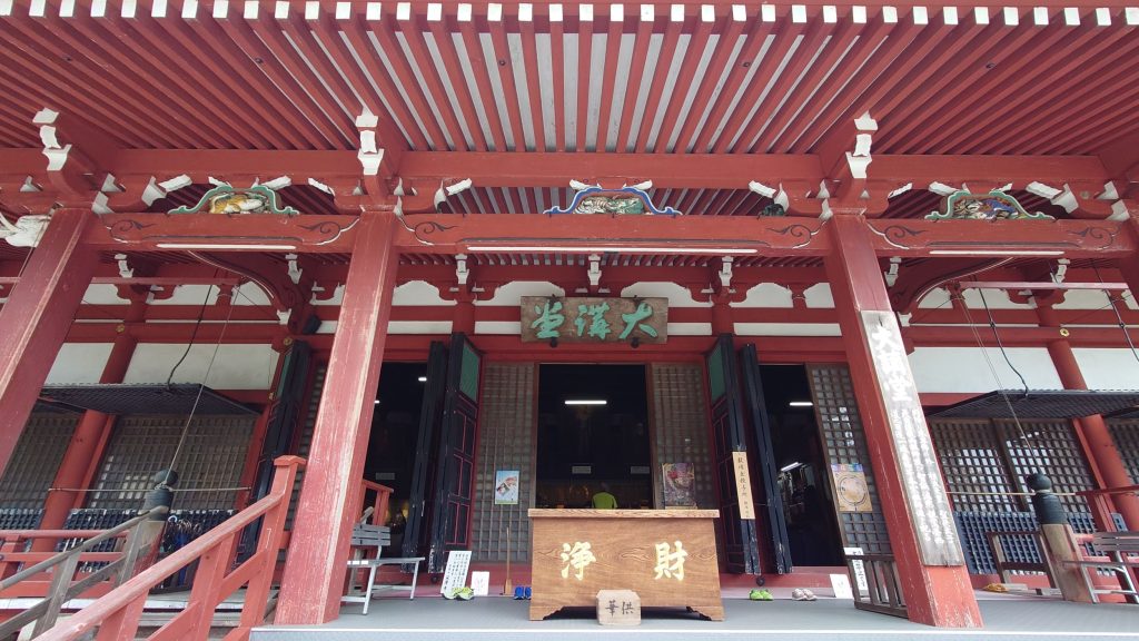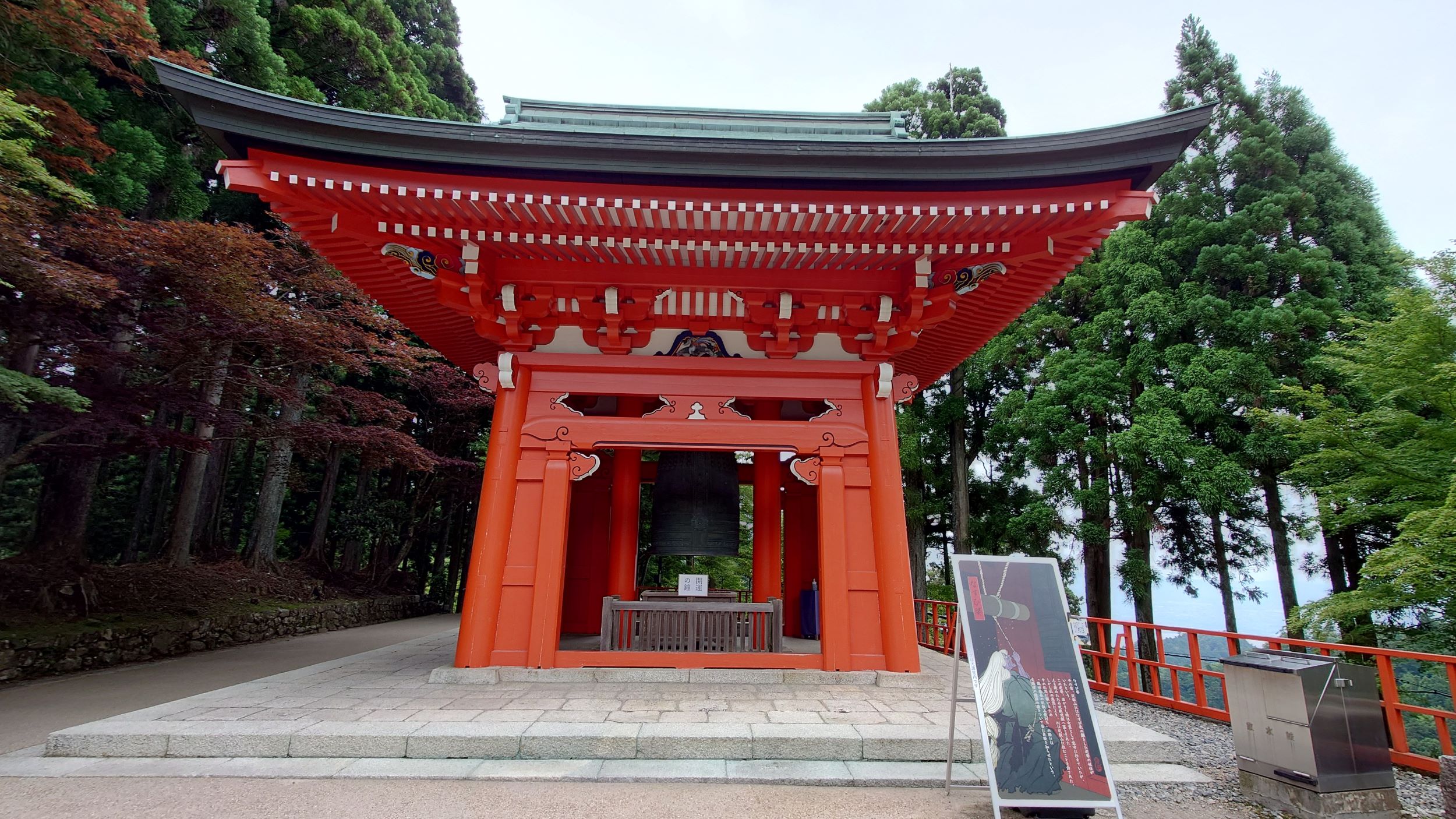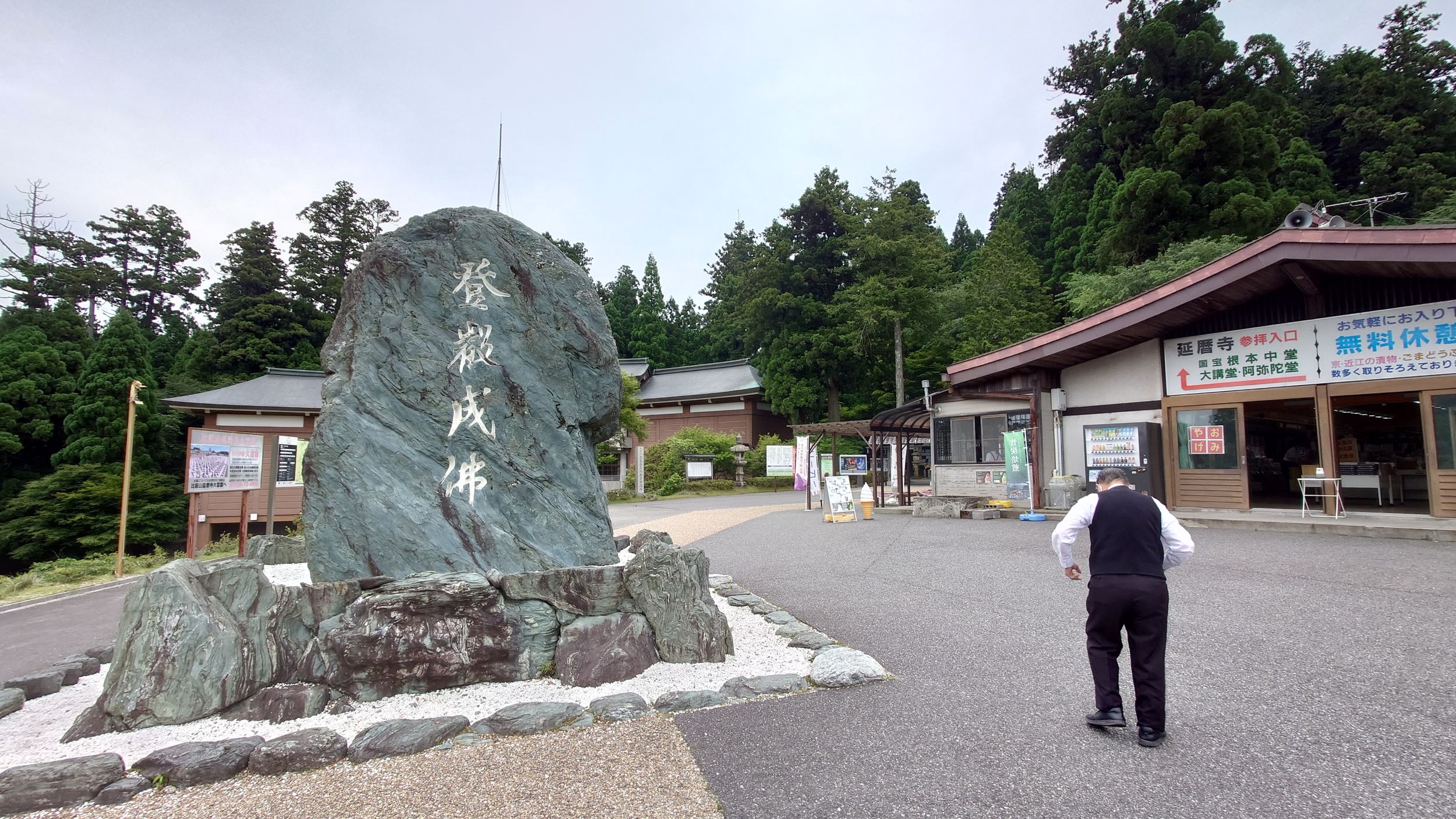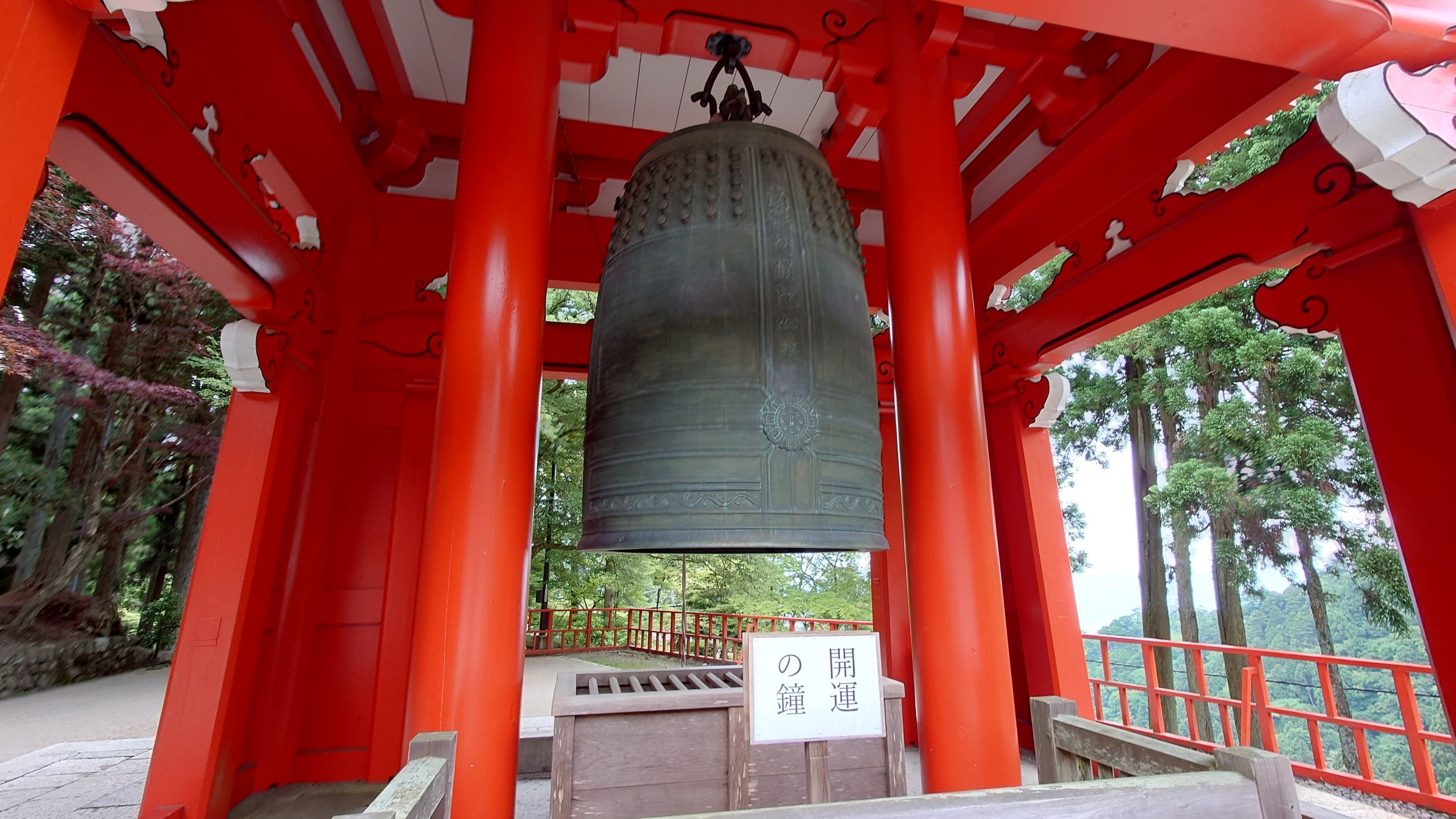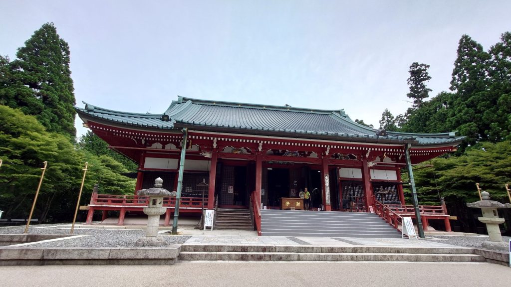 比叡山ドライブウェイの中央には延暦寺が位置しています(^▽^)さて、早速入場しましょう!料金は1人1,000円です。少し高めですが、中に入ると有名なお寺らしく、広大な敷地が広がっています。それでは、施設を少しずつ紹介します。まずは、大講堂・幸福の鐘です。残念ながら、全ての施設内部での撮影は禁止されていますので、写真は外観のみ紹介できます。敷地内は広く、様々なお土産屋やレストランがあります。幸福の鐘も自由に打つことができるので、散策中はずっとゴンゴンと鐘の音が鳴り響いていました!