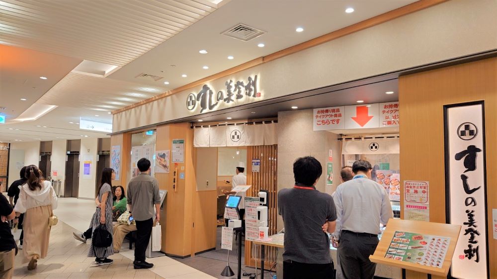 ビジネスリンクスナゴヤ室長新井です。久しぶりにランチのおすすめを紹介します。今回はビジネスリンクスナゴヤの近くではありません!少し離れた名駅前のJPタワーゲートタワーの12階にある有名なお寿司屋さんに行ってきました。前々から気になっていたので、今回はリンクスのIT担当者と一緒に行ってみました!お店は大変混雑しており、約20組待ちの状態でしたが、頑張って1時間ほど待って食事することができました。