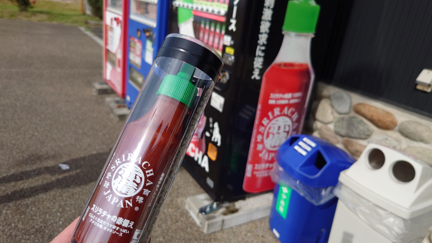 久しぶりに、道の駅をご紹介します。今回は愛西市に位置する「道の駅 立田ふれあいの里」にやってきました。名古屋市からも比較的近い場所にあり、意外にも田舎らしい雰囲気が漂うここでは、新鮮な野菜が豊富に取り揃えられています。しかし、今回は夕方に立ち寄ったため、野菜はほとんど残っていなかったのが残念でした(ノД`)・゜・。 ですが、今回の目的は別にありました。この地域ではここでしか買えないと思われる、自動販売機で販売されている「赤備」という悪魔のホットソースがあるんです。ネット上で評判になっていて、何にでも合うと言われています。自販機を探していると、自販機の前で迷っている夫婦がいました!私が率先して購入すると、不思議なことに周りにいた人々も次々と購入し始めました!みんなが迷っていたんですね~私がスタートを切ったみたいです(o^ ^o) / 今日はこのソースを試食してみることにしました。