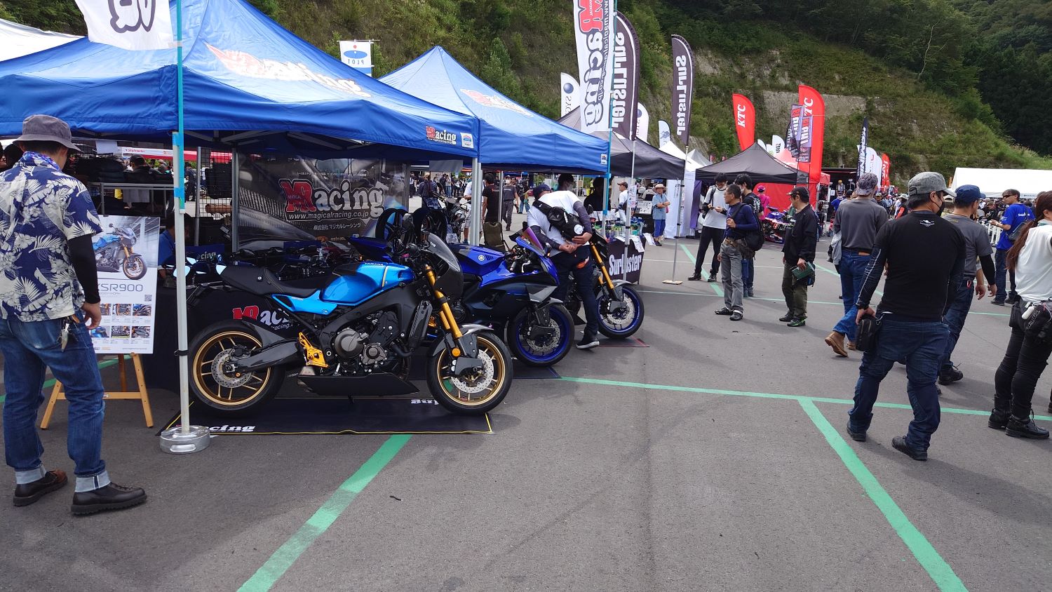 滋賀県で開催された「ヤマハモーターサイクルデイ2023」に参加してきました!イベントでは、ヤマハの新しいバイクや現行モデルの展示はもちろん、さまざまな他社のブースもあり、多くの人でにぎわっていました。個人的にはヤマハのバイクが大好きで、興味があるバイクを見に行きました。今年秋に発売予定とされている「トレーサーGT900+」が気になっています。現在、私は中型バイクしか所有していないので、久しぶりに大型バイクに乗ることを考えています。どうしようか悩んでいるモデルですね~。