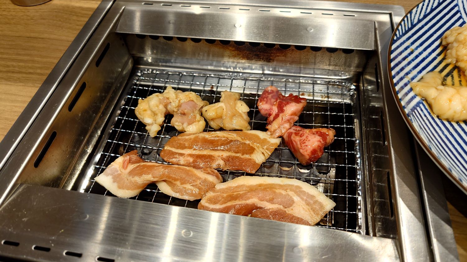 しかも、お値段が手頃です!いつも行列ができているので、早めの時間帯に入店しました。値段の割に味は、まあまあかな〜悪くはありません。何よりも1人焼肉なので、入店から食べ終わって退店まで、約20分で済みました!焼肉をこんなに早く食べたの初めてで、しかも1,700円程度で済みました。普通の焼肉屋なら、1人でも5,000円〜6,000円はかかることがあります。ちょっと寂しい感じの焼肉かもしれませんが、これはこれで楽しいですね![]()