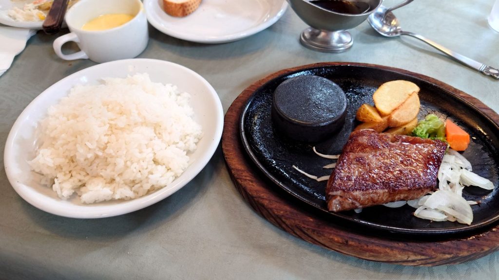 地元の名古屋でお馴染みの「ステーキのあさくま」に行ってきました。私は仕事の関係でよく利用しています。ビジネスリンクスナゴヤからも車で約10分ほどで、比較的近くて利便性が高いです。ほとんどいつも注文するのは、赤身ステーキ150gですね(^_^) その他にも、サラダバーが充実しているので、サラダやライス、コーンスープをたくさんいただきます。