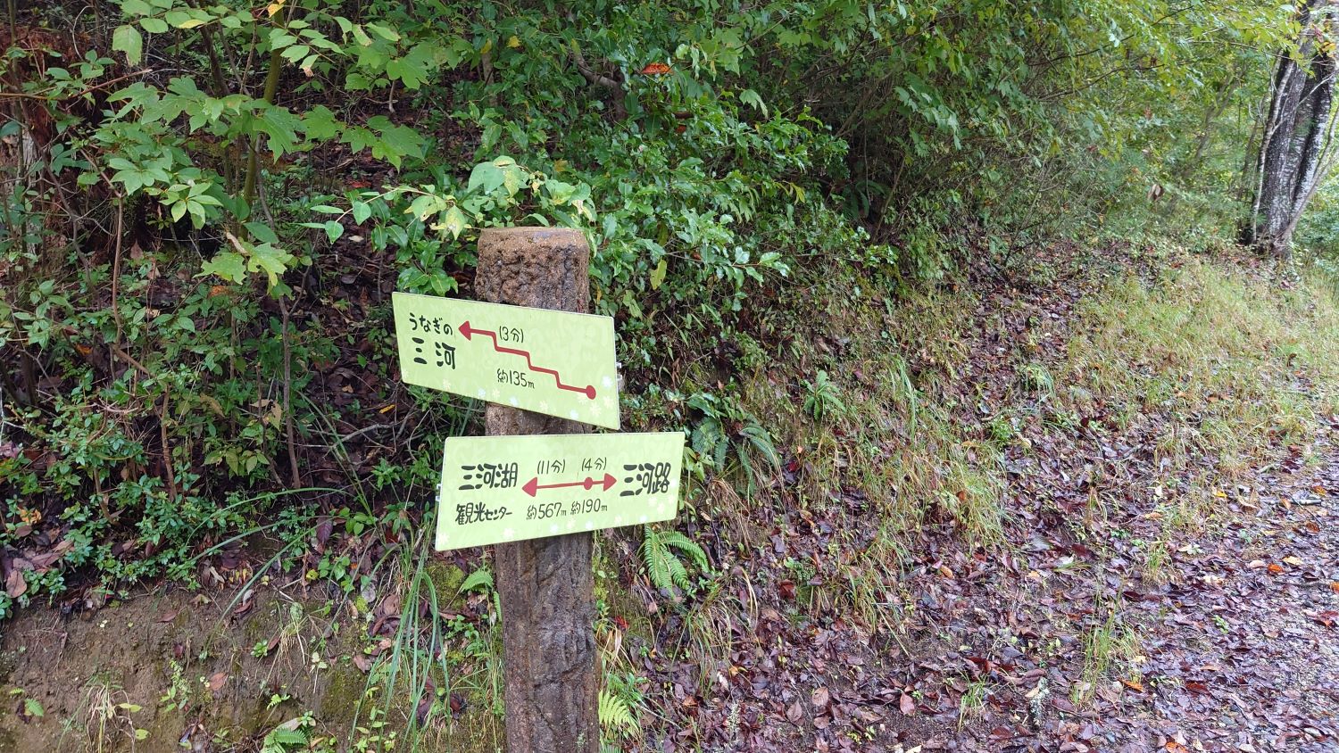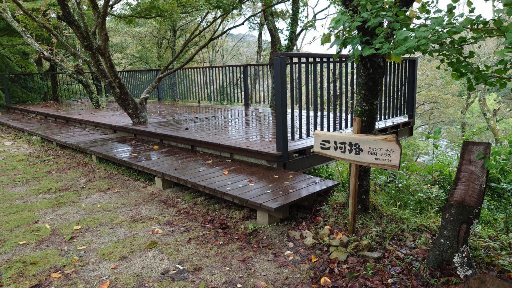 うな重を食べた跡は、食後の運動で、三河湖の散策道を少し散歩します。雨が降っているのであまり散歩出来ませんでいたが、もう少し紅葉が始まったら再度散歩しに行きたいと思います。散策道入口横にBBQが出来るテラスがありました!ちなみに有料で予約が必要な場所みたいですね(^_^)
