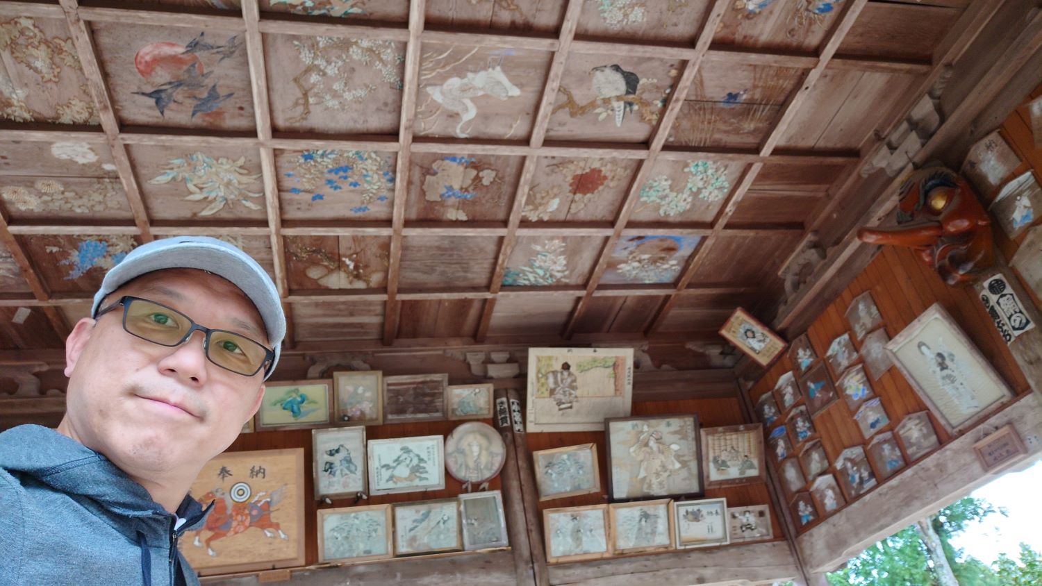 また、隣にある楽堂の天井絵は素晴らしいもので、歴史文化財に指定されているだけのことはあります。場所は少し山奥にあり、分かりにくいかもしれませんが、ぜひ足を運んでみてください。
