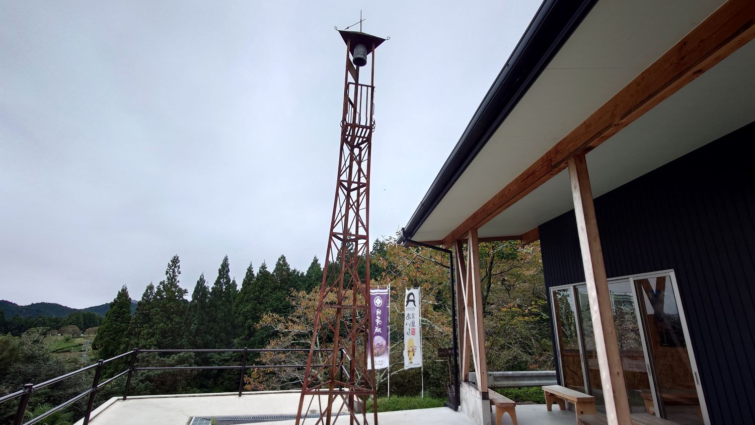 この敷地にはさまざまな魅力があり、田峰観音と田峯特産物直売所が存在し、最後には「だみねテラス」に立ち寄りました。このお店は、最近建てられたようで、非常に美しく、目立つ存在です。調べてみると、令和4年4月にオープンしたようですね(^^) このお店は基本的にカフェで、飲み物やスイーツが中心です。名前に「テラス」が付いている通り、外のテラスからは素晴らしい景色が楽しめます。また、テラスには、火災時に鳴らす鐘の塔が設置されており、子供の頃に近所で見かけた懐かしいものです(^^) 現在は見られなくなりましたが、思い出深いです。