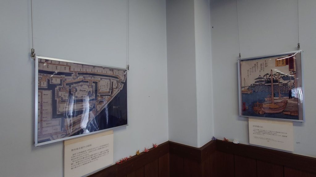 桑名城には、元禄大火後に再建された時点で51の櫓があったと記録されています。このなかでも、川口にある七里の渡に面して建てられていた蟠龍櫓は、東海道を行き交う人々が必ず目にする桑名のシンボルでした。歌川広重の有名な浮世絵「東海道五十三次」でも、海上の名城と謳われた桑名を表すためにこの櫓を象徴的に描いています。