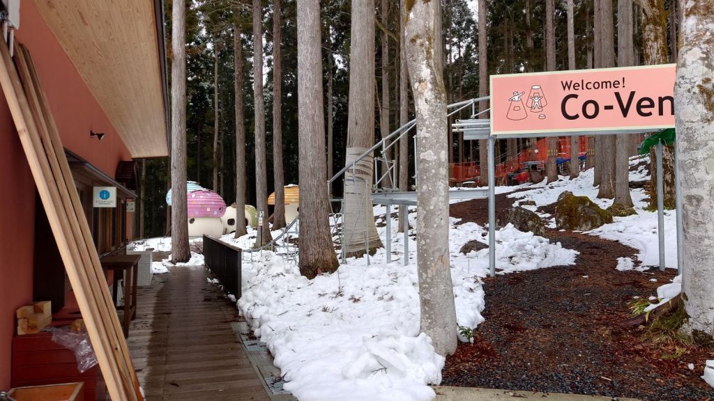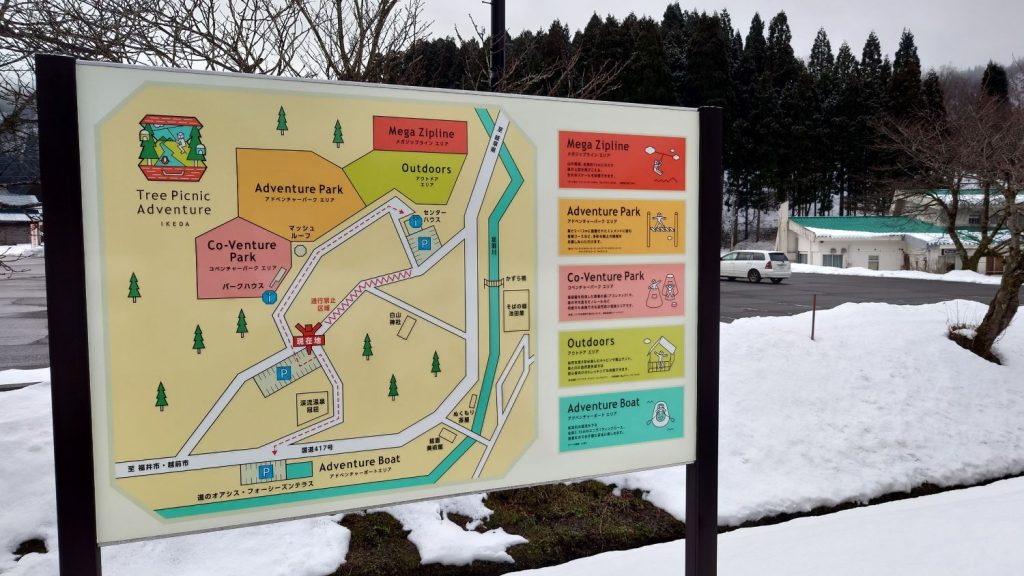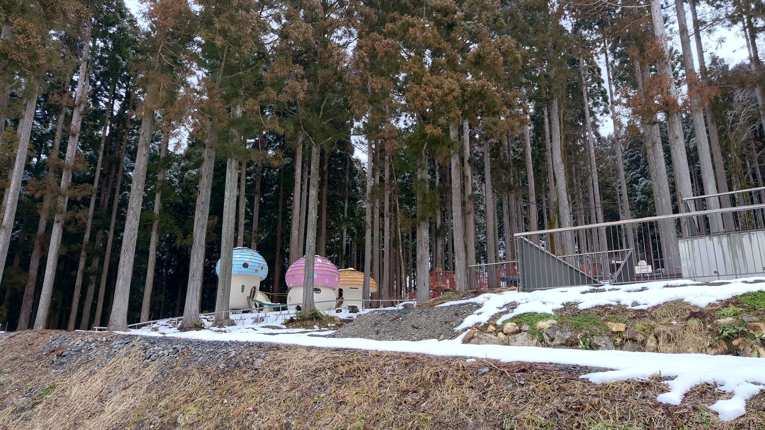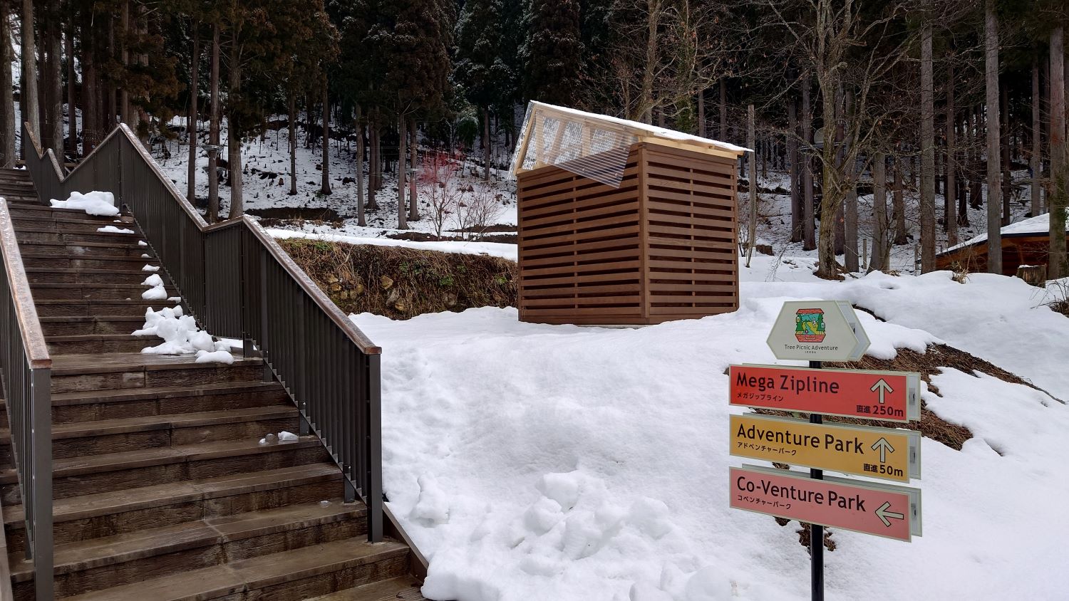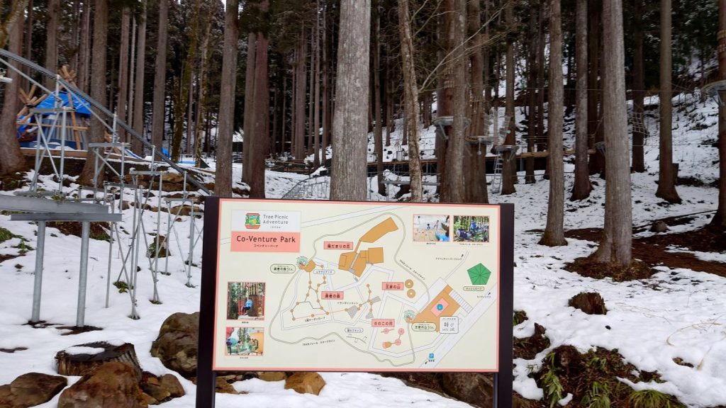 今回は、冠山トンネルを抜けた先に、偶然見つけた「ツリーピクニックアドベンチャーいけだ」に立ち寄りましたが、冬の間はお休みのようですね。誰もいませんでした。こちらはキャンプやアスレチックなど自然を楽しむ複合施設のようです。ホームページを確認すると、ログハウスやキャビンなどでの宿泊も可能なようです。もちろん、BBQやピクニックなど様々な山遊びが楽しめます。暖かくなったら友達と泊まりに来るのもいいかもしれませんね~(^_^)