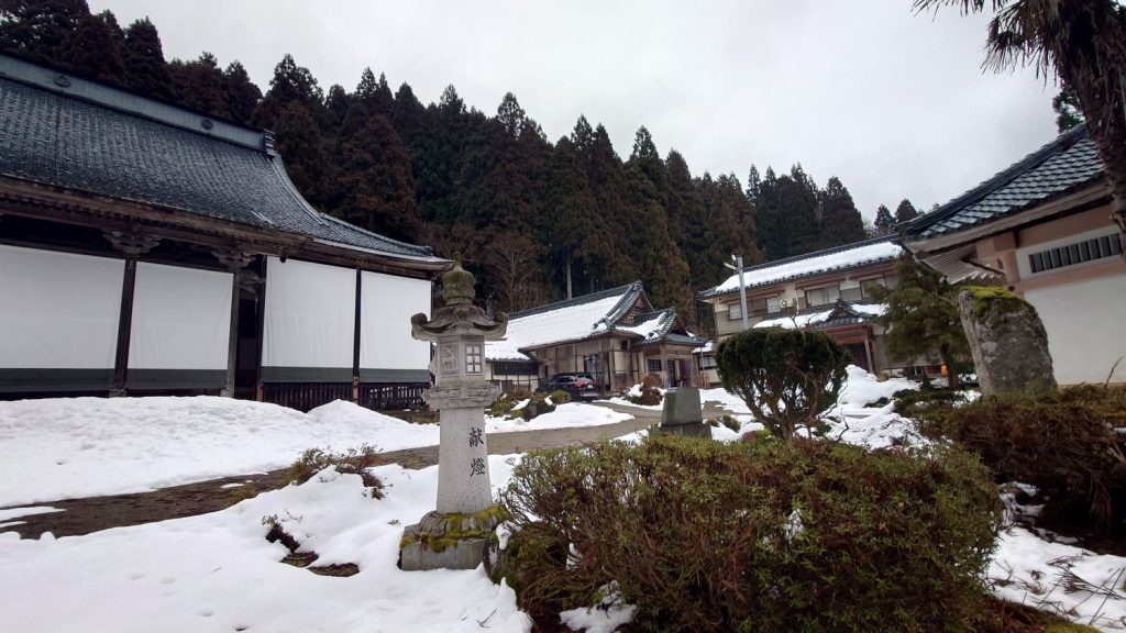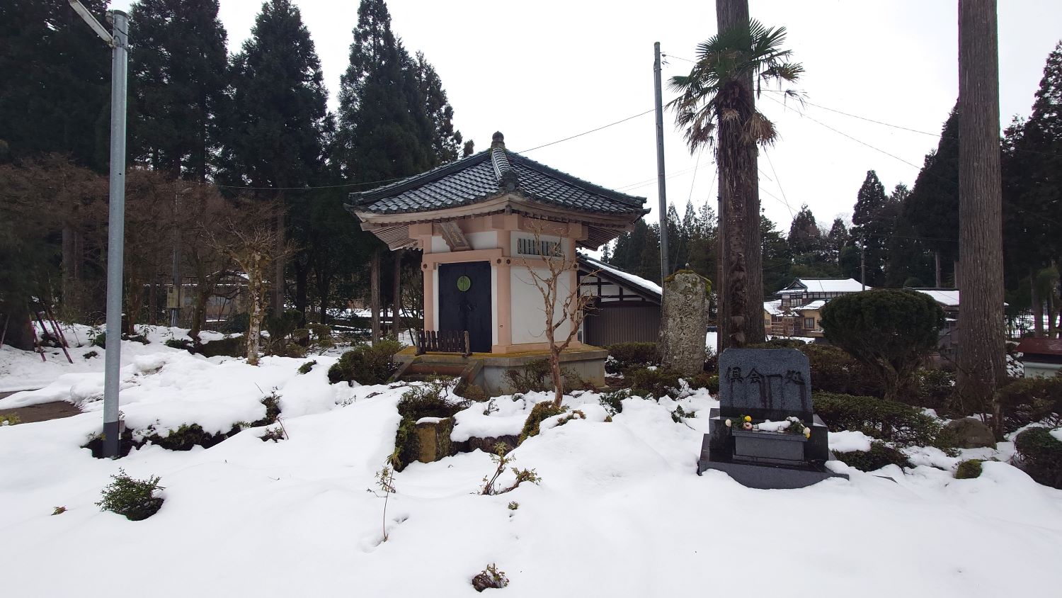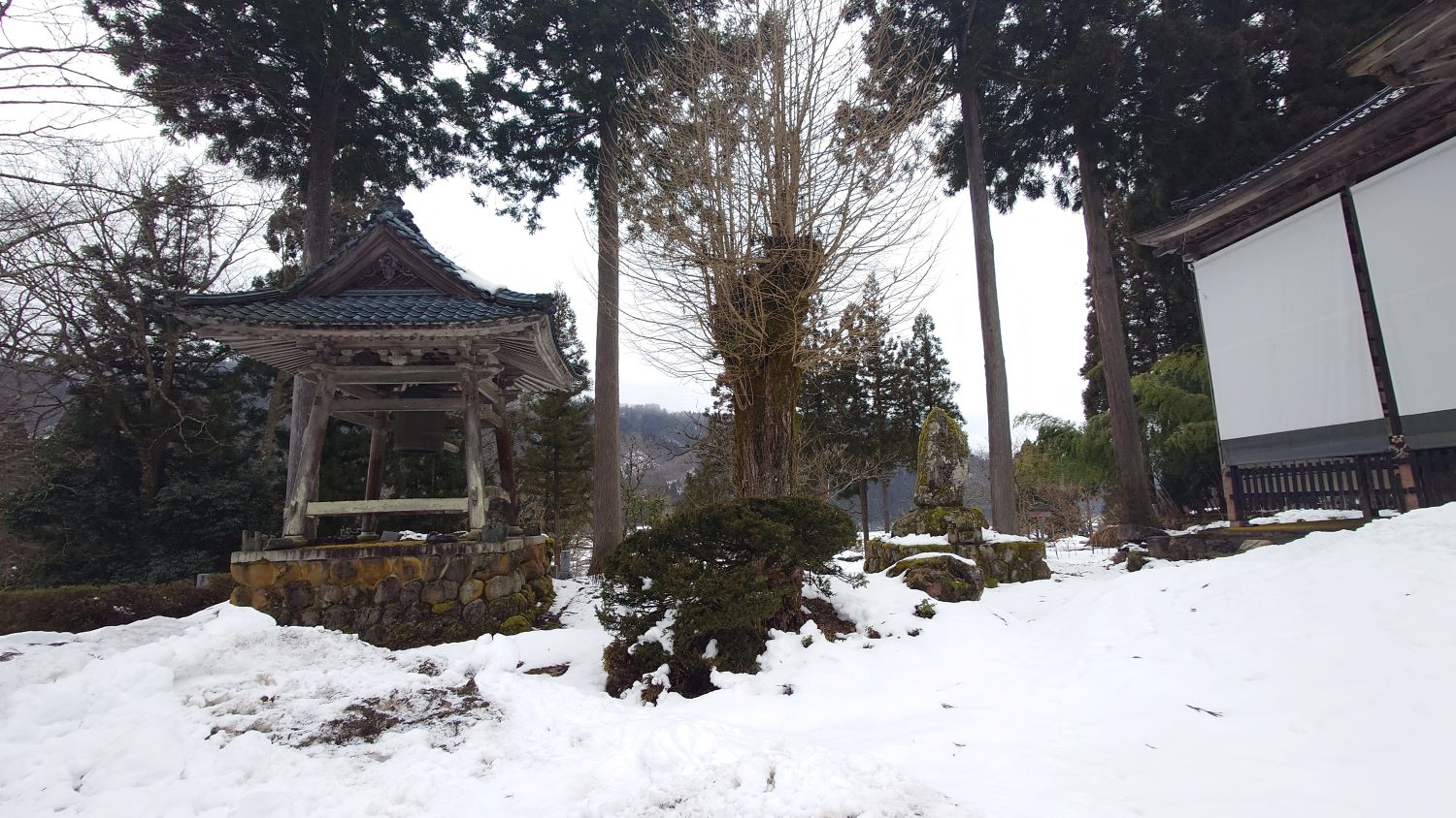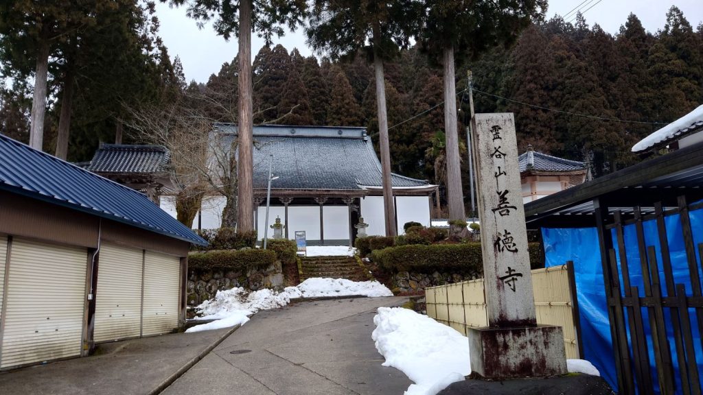 今回は、福井県今立郡池田町にある善徳寺を訪れました。この寺は堀口家住宅のすぐ近くに位置しています。善徳寺は、水戸天狗党が京都へ向かう途中に宿泊した場所として知られています。歴史については詳しくありませんが、この場所が歴史的に重要な意味を持っていることは想像できますね(^_^) 私が訪れたのは真冬でしたので、本堂には雪を防ぐための防護幕がされており、内部を見ることはできませんでしたが、夏場には内部の詳細な構造まで見ることができるようです。賑やかな名所ではありませんが、散歩やドライブの途中で立ち寄るのも良いでしょう。