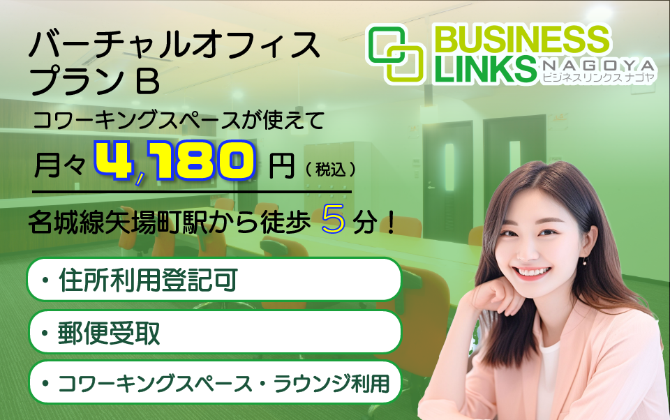 名古屋・栄・矢場町などで、バーチャルオフィスを利用して住所登録や法人登記、コワーキングスペースの利用など、さまざまなビジネス活動が可能です!まずはご相談下さい。