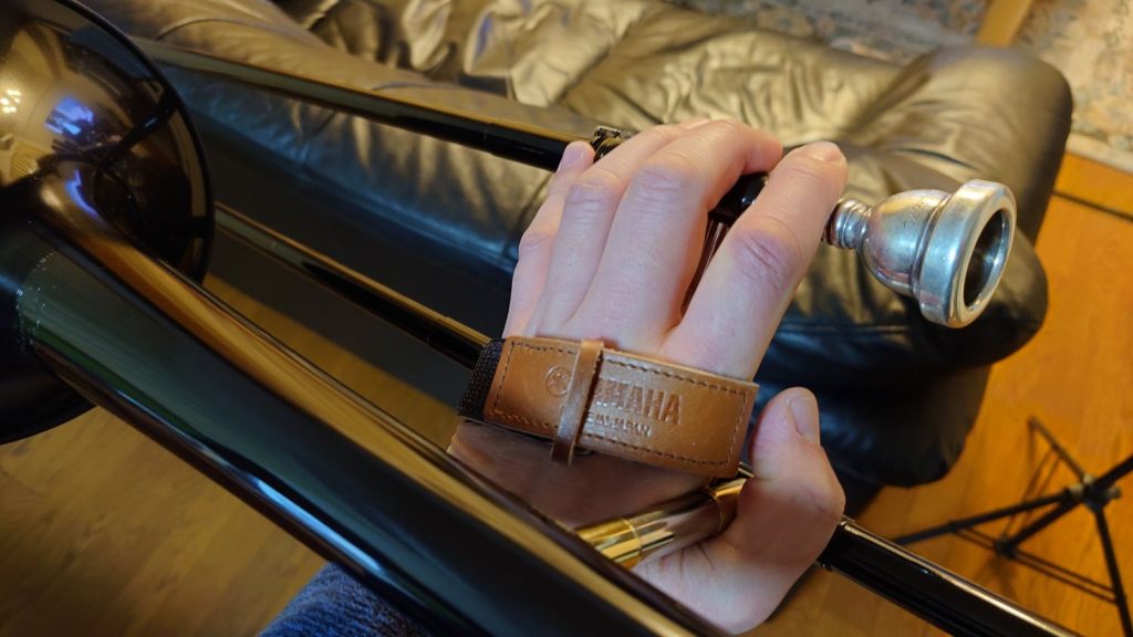 今回は久しぶりに楽器の話題です!最近、トロンボーンの練習をしすぎて、左手の指が腱鞘炎になってしまいました。トロンボーンを構えると痛くて、とてもつらいです(T_T) そこで、同じ悩みを抱える先輩から、トロンボーン用のサポーターがあると教えてもらいました。早速楽器店に行って購入し、使ってみました。実際に使ってみると、すごくいい感じです。楽器を握る必要がなく、指を真っ直ぐに保ったままトロンボーンを固定できます。これにより、指への負担もなく楽に楽器を構えることができます。ちょっとお値段はしますが、その効果は抜群です。大変満足しています(^_^)
