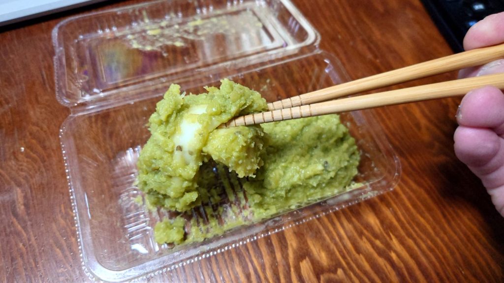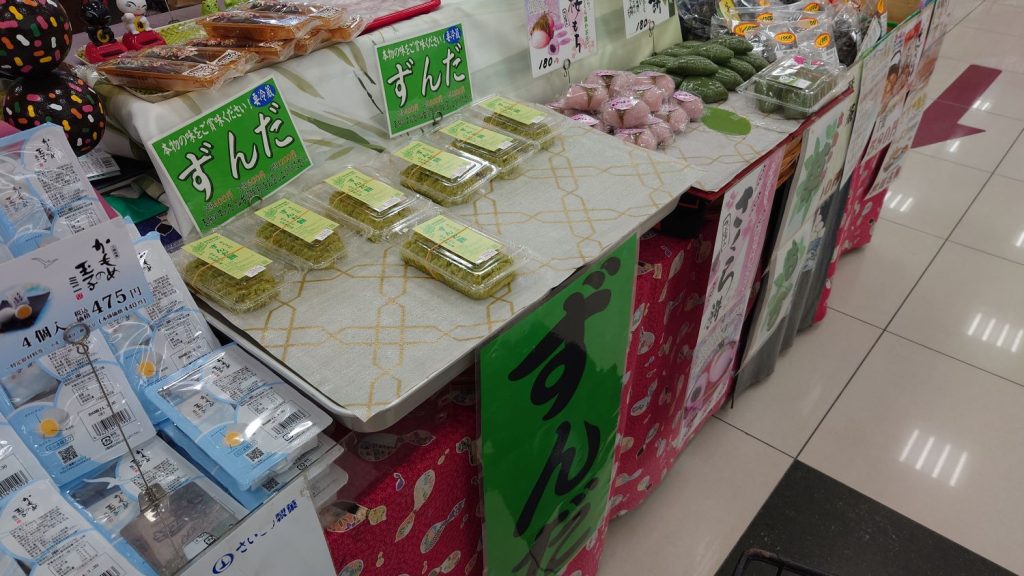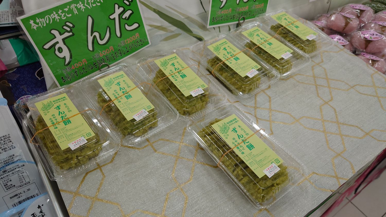 今回は、東北の名物である「ずんだ餅」を紹介します。なぜ「ずんだ餅」なのかというと、最近ネットで「ずんだもん」というキャラクターが有名になり、「ずんだもん」の好物が「ずんだ餅」だからです。ちなみに、私は「ずんだ餅」を知らなかったので、一度食べてみたいと思って探しましたが、どこにも売っていなくて、残念に思っていました。しかし、近所のスーパーで東北イベントが開催されており、そこで偶然「ずんだ餅」を見つけました!早速購入しました。緑色の餡は、枝豆をすりつぶしたものです。枝豆の餡を餅と合わせたものですね(^_^)どんな味がするのかとても楽しみにして食べましたが、やはり枝豆の味がしました!でもとても美味しかったです。1個200円なので、ちょっと高いかなと感じましたが、もう少し安いとありがたいですね!ちなみに、東北には「ずんだシェイク」というものもあるそうです。いつか飲んでみたいです。