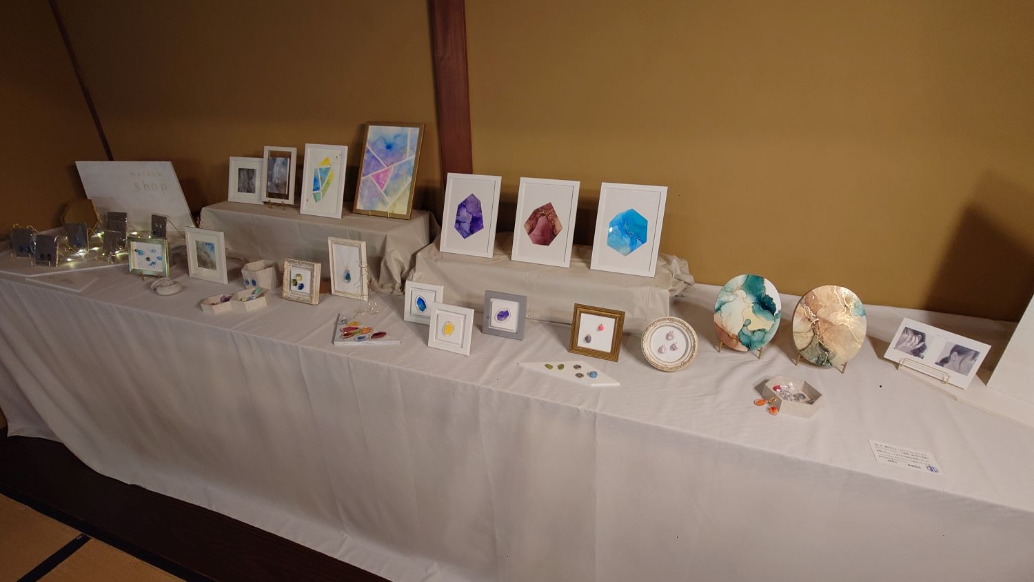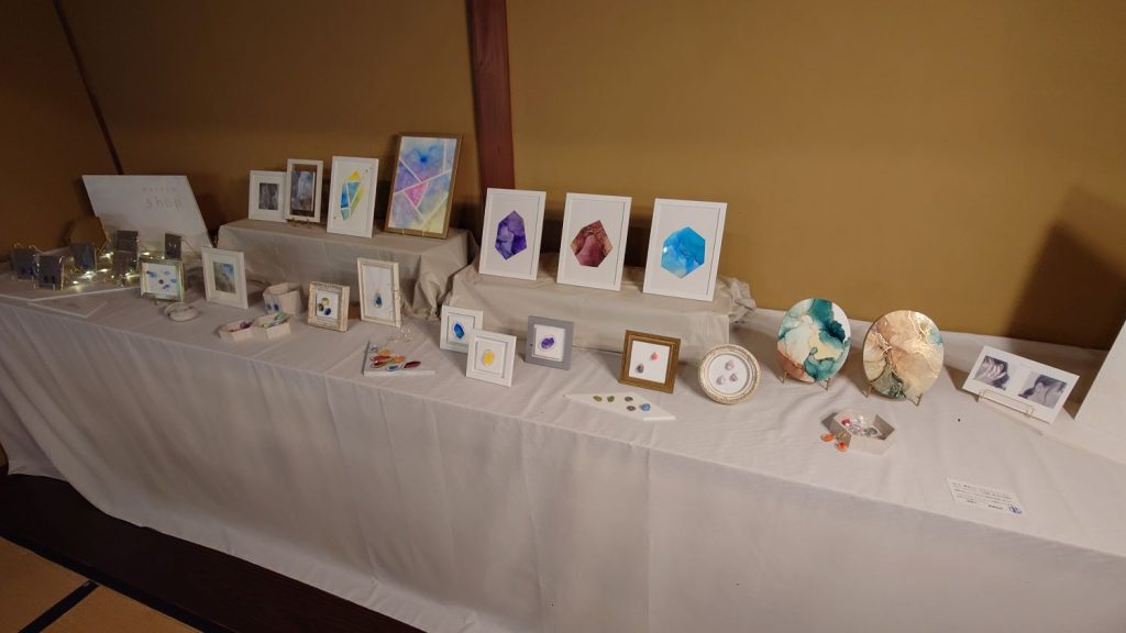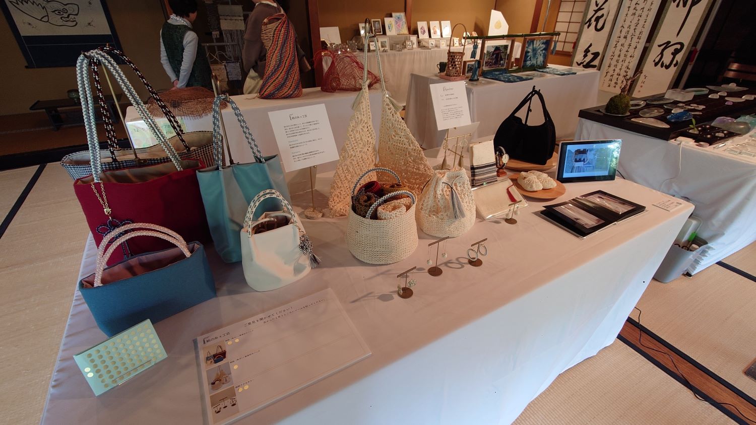 ついでながら、「ありったけのあい作品展」で他の方々の展示物もご紹介します。とにかくたくさんの作品がありました。自作の絵画、生け花、アート作品、バッグなど、様々な方々が自らの作品や商品を展示していました。どの作品も日本らしい「和」の雰囲気が漂っており、古民家を展示会場として選んだのはそのためでしょう!商品は実際に販売もされていますが、それらは個人のアマチュアの方々が自らの思いや得意を形にし、展示発表しているという感じです。既製品にはない独特な商品ばかりで、世界に一つしかないものばかりです。次回の開催時期は未定ですが、こうした展示会の見学も学びになります。