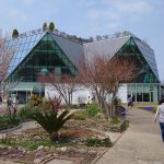 愛知県江南市に位置するフラワーパーク江南の敷地内にあるクリスタルフラワーに入ってみました。この施設は、フラワーパーク内で唯一の建物です。おそらく花をイメージしたデザインなのでしょう。入口に近づくと、すぐにレストランのメニュー看板が目に入りました。価格は普通です。中に入ると、多くの人々が様々な活動をしていました。中は複合施設になっており、レストラン、ショップ、セミナーなども行えるようです。次回はもう少しゆっくりお茶でもしたいと思います。