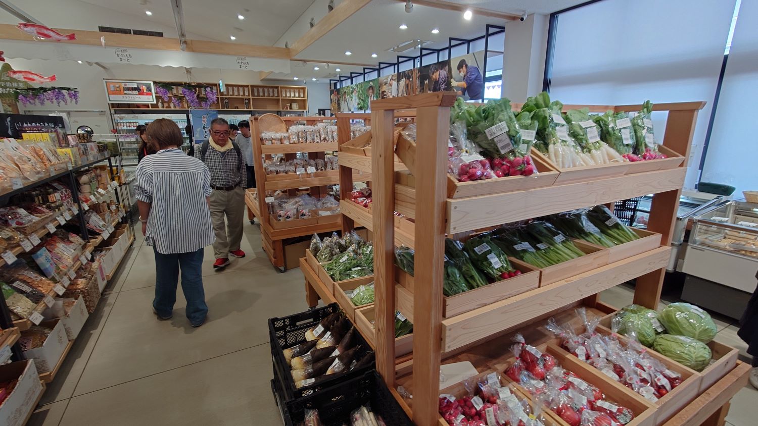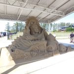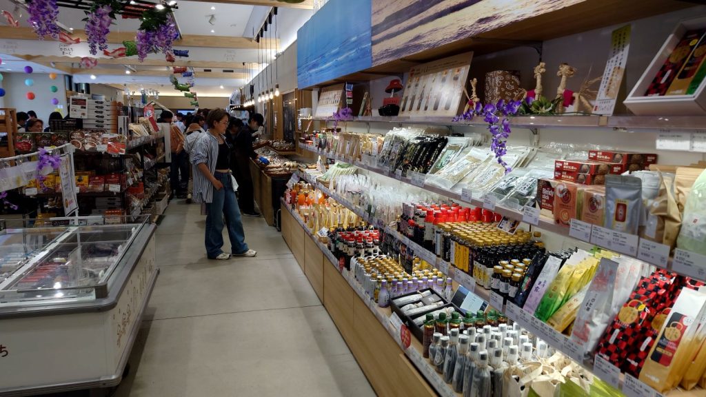 入ってすぐの場所には、砂でできたモニュメントが展示されていました。仙女と龍とイノシシかな~ちょっとテーマが分かりませんが、上手にできています。店舗に入ると、一般的な道の駅の雰囲気でした。地元の野菜や特産品がたくさん販売されており、地域の魅力を感じることができました。