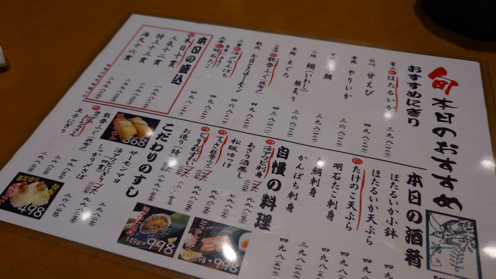石川県の金沢市までやってきました!今回は、ランチに立ち寄ったお寿司屋さんを紹介します。金沢市内を走りながらどこか良いお店はないかな~と探していたところ、このお店が空いていたので早速入店してみました。ほかのお店と比べて空いてるのでどうしてなのかな~と思いながらメニューを見てみると、なるほど、他のお店と比べて料金が高いようです。でも、少しぐらい高くてもここで食べることにしました。