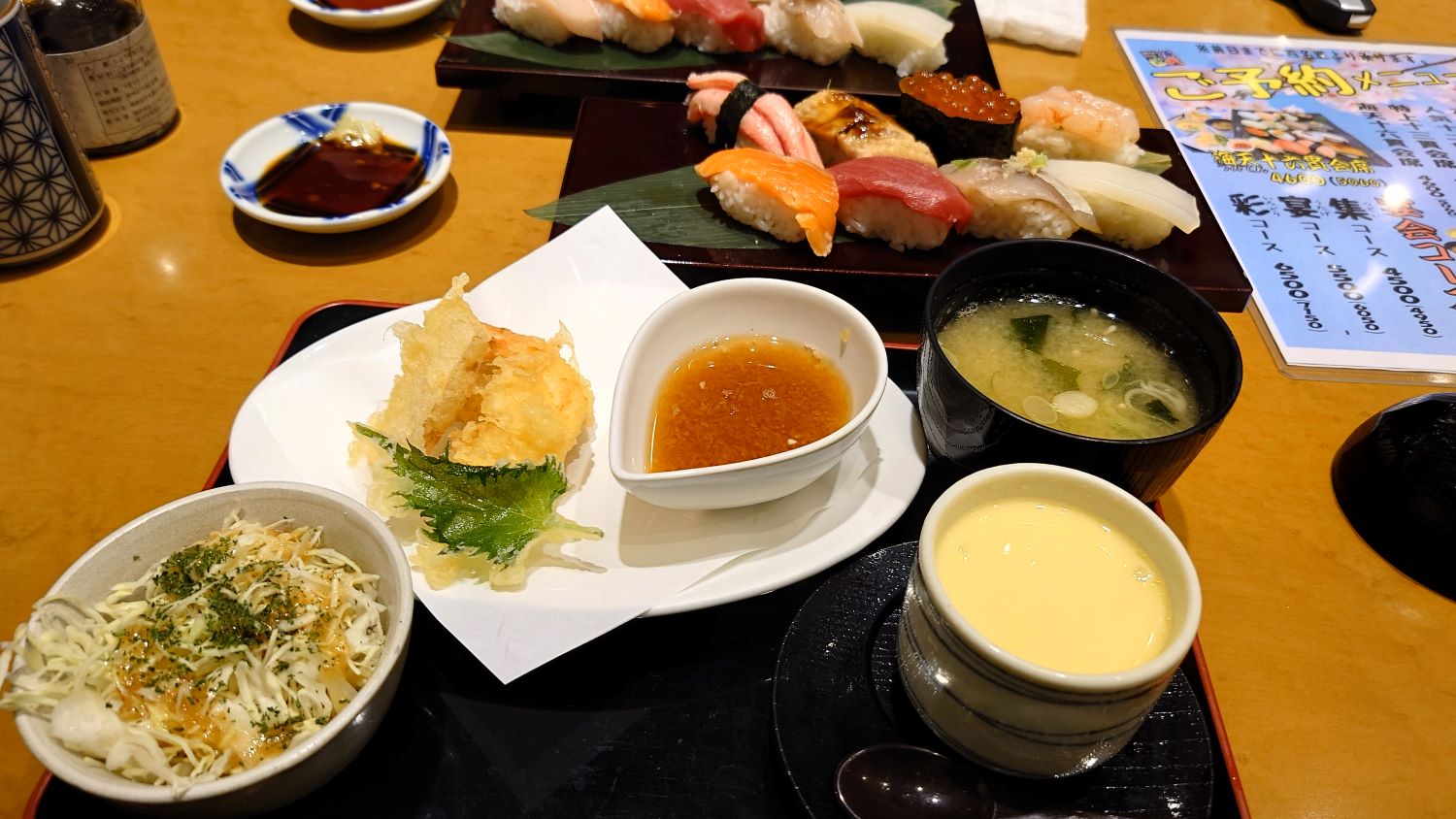 早速、特上寿司セットを注文して食べてみました。さすが金沢です。ネタも良くて美味しい!悪くないと思います。このくらいのメニューを都会で食べようとしたら、倍くらいの値段になるでしょう。金沢の人たちからすると少し高く感じるのかもしれませんね(^_^)