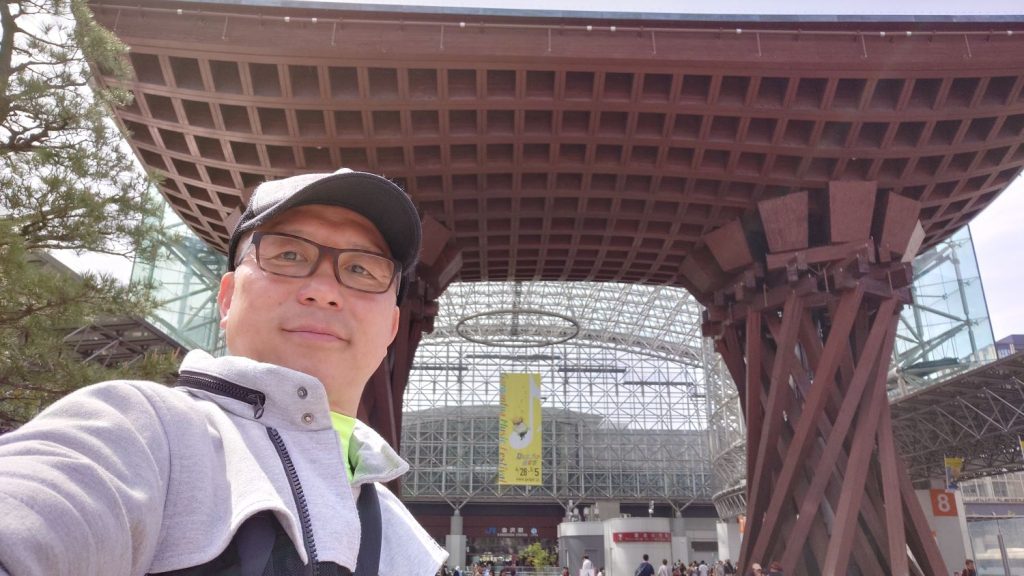 ランチの後、金沢駅前に来ました。金沢市内ではバイクの置き場所がなく、大変困りました。なんとか路上駐車をして、駐車違反を取られる前に、駆け足で駅前の鼓門の前で写真を撮ってきました。とてもバタバタしていました。ゆっくり見物することはできませんでしたが、少し周りを見渡すと、さすが金沢、たくさんの外国人旅行者が記念撮影をしていました。もちろん日本人も多くいました。私は金沢に来るのは実に40年ぶりくらいです。記憶にないくらい遠い昔のことです。次回は車でゆっくり一泊しながら観光したいと思います。