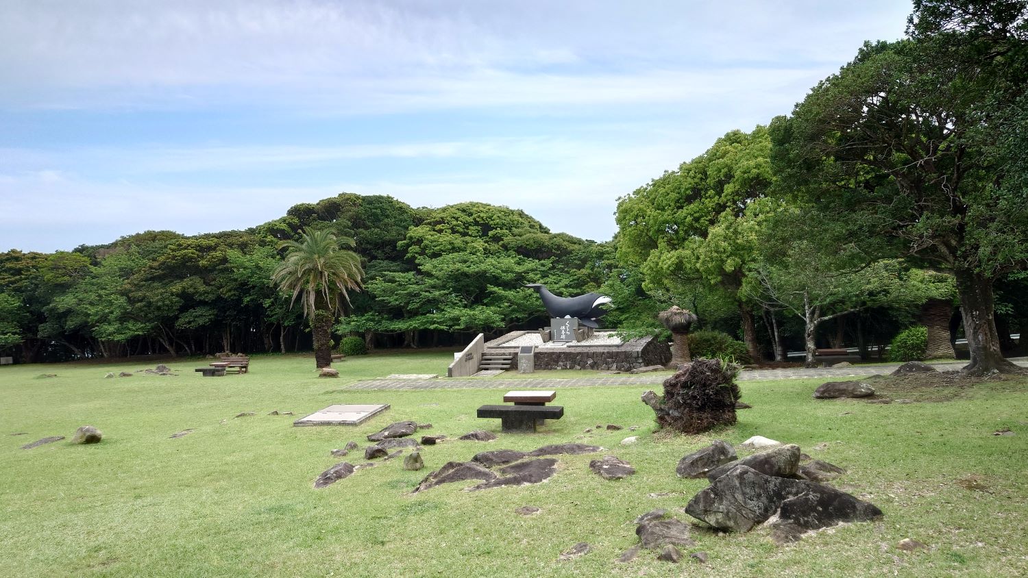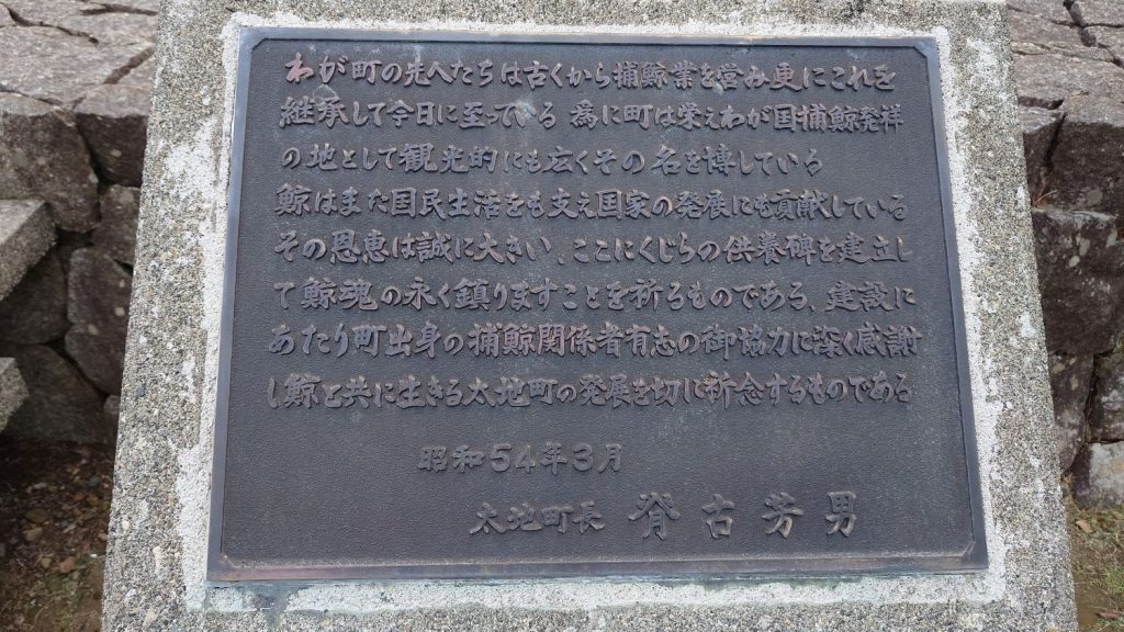 今回は、梶取埼公園内に位置する「くじら供養碑」を紹介します。クジラは古くから日本で盛んに行われていた漁業であり、戦後の日本の食料危機を救った食材でもあります。私も子供のころによく食べました。独特の食感でとても美味しかった記憶があります。