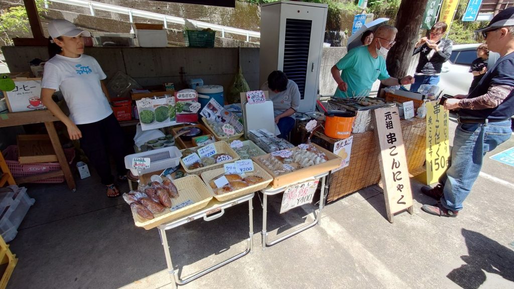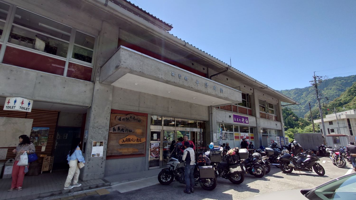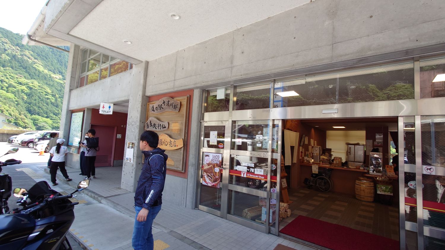 今回は、和歌山県吉野郡に位置する道の駅「十津川郷」で昼食休憩をとりました。ここまで走ってきて見えてきた景色は、山ばかりです。とにかく田舎の中の田舎です。こんな場所にある道の駅なので、お昼時になるとドライブしている人たちが殺到していました。車もバイクもいっぱいで、人で溢れていました。中の蕎麦屋さんも30分くらい待ちました。早速そばを食べてみると、やっぱりこのようなお店の蕎麦は美味しいですね。食事の後、中を眺めてみましたが、お土産コーナーは小さかったです。駐車場には足湯もあり、コンパクトながらいろいろと楽しめる道の駅です。
