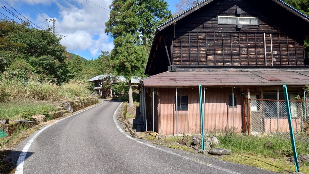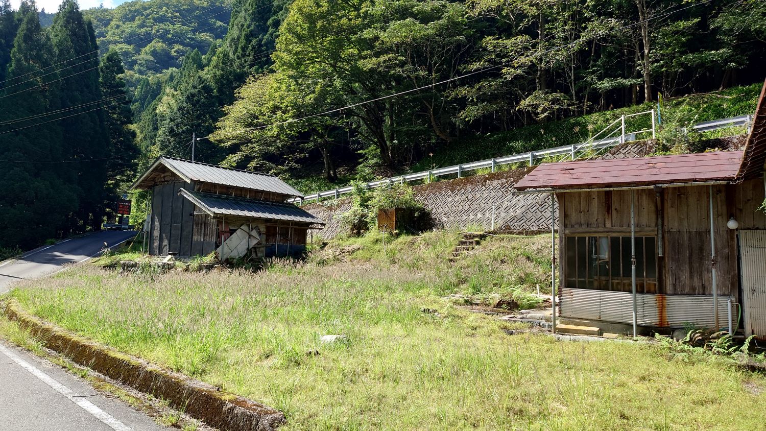 今回は、国道157号線沿いに位置する廃村「黒津集落跡」に立ち寄ってみました。まだ最近まで人が住んでいたような雰囲気が残っており、家屋も比較的しっかりしていて、今でも使えそうな印象を受けます。家々を見渡すと、屋根を支えるためか、工事用の金属製の柱が数多く設置されていました。おそらく、雪の重さから屋根を守るための補強でしょうか。ほぼすべての家にその柱が取り付けられています。
