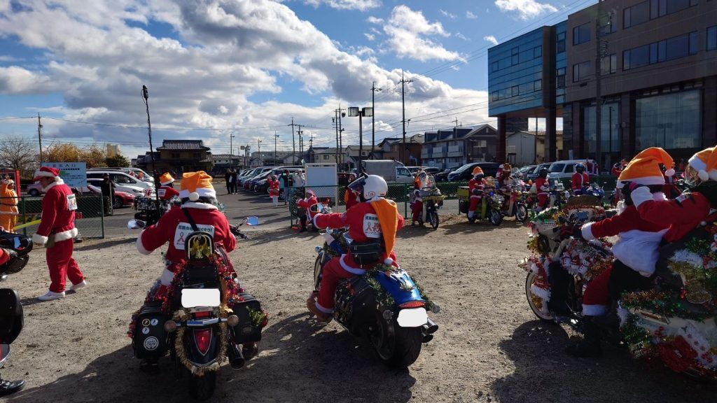 今回は、毎年参加している児童虐待防止運動「クリスマス・トイラン」に参加するため、ハーレーサンタクラブ名古屋のイベントへ行ってきました。今年で早くも11年目。時が経つのは本当に早いものです。今年は特に寒く、少し厳しい気候でしたが、気合を入れて走ってきました。