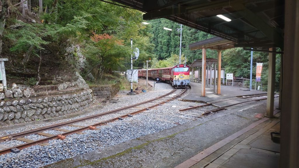 さて、大井川鉄道の最果て、井川駅にやってきました。大井川鉄道の終点駅ですが、ここに到達するには、千頭駅で一回り小さなトロッコ列車に乗り換えなければなりません。昔はさらに先まで行けたようですが、現在では井川駅が終点となっています。