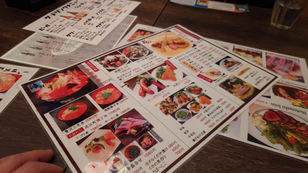 今回は金沢市にある近江町市場へ立ち寄り、食事をしました。遅い時間だったため、市場内の店舗はすでに閉店していましたが、通常の飲食店は営業していました。