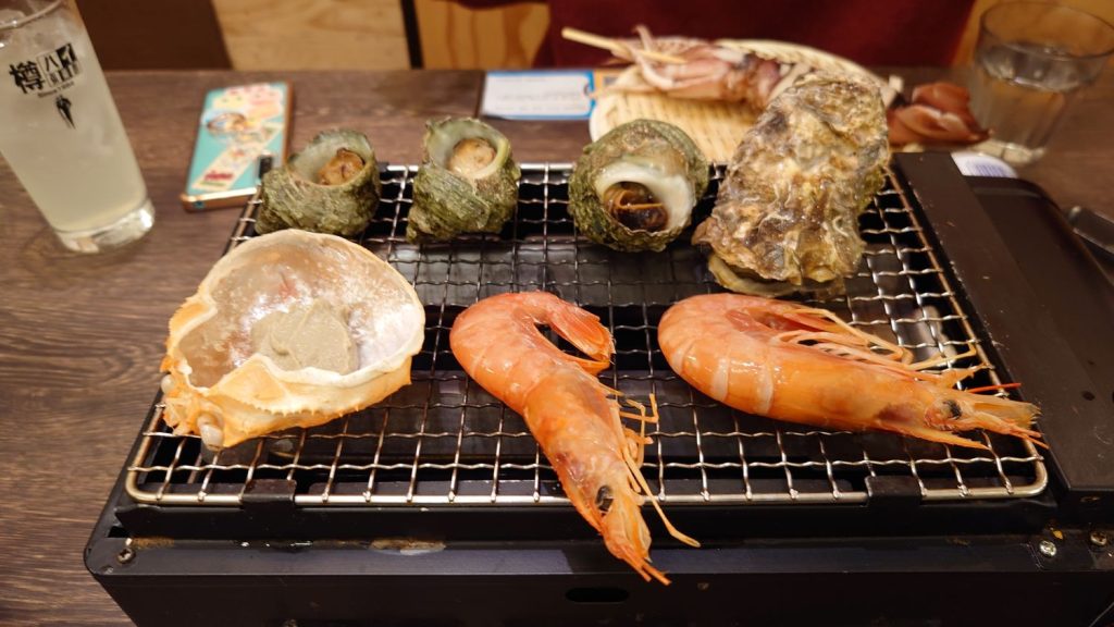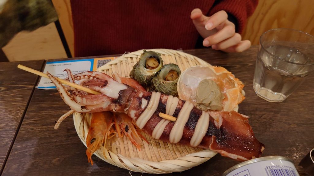 早速、近江町市場の入り口すぐにある「浜焼き能登牛 近江町横丁」へ入店。海鮮を注文し、目の前で焼いて楽しみました。やはり目の前で焼くと、香ばしい香りが食欲をそそりますね。お酒も進み、さすが金沢の味だと実感しました。