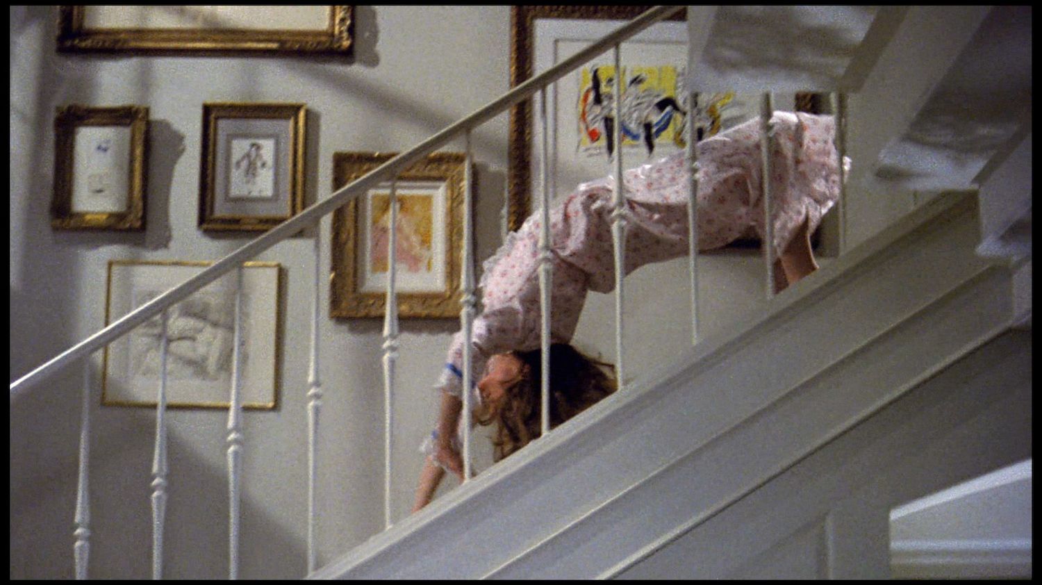 特に有名なシーンは、主人公の少女がブリッジの体勢で階段を下りてくる場面。あまりの怖さに、子供のころの私はお漏らししそうになりました (o^ ^o) 。