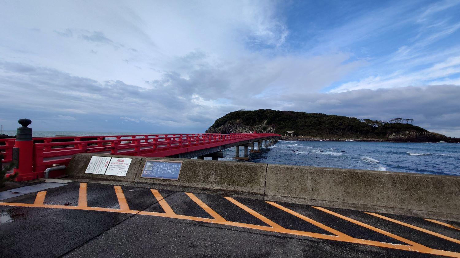 地元では「神の島」とも呼ばれ、「大湊神社」が祀られています。島の周囲には遊歩道が整備されており、散策にはちょうど良い環境ですが、私が訪れたのは真冬だったため、寒さであまり歩き回ることができませんでした。次回はもう少し暖かい季節に訪れ、ゆっくり散歩を楽しみたいですね。