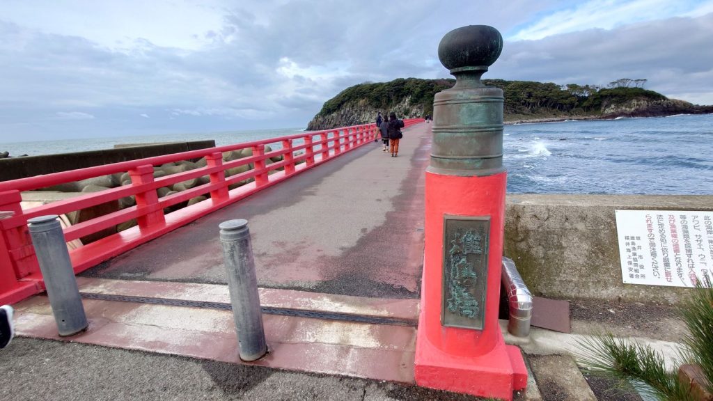 前回は、福井県の「雄島」に寄り道しました。この島は、東尋坊の沖合に位置し、約1300万年前の溶岩によって形成された小さな島です。東尋坊ほど観光客で賑わう場所ではありませんが、赤い橋を渡って島へ向かってみました。